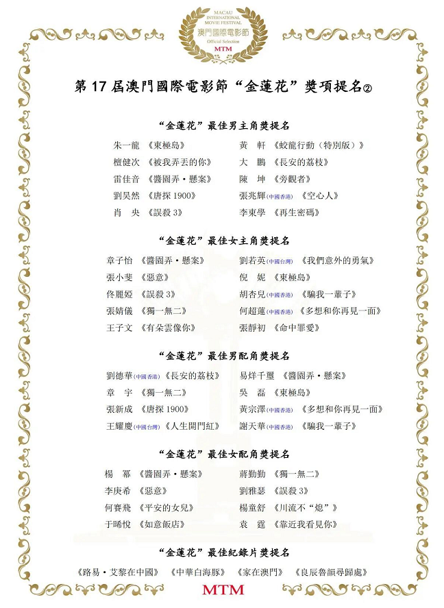 而接下来最受瞩目的,莫过于第17届澳门国际电影节金莲花奖。