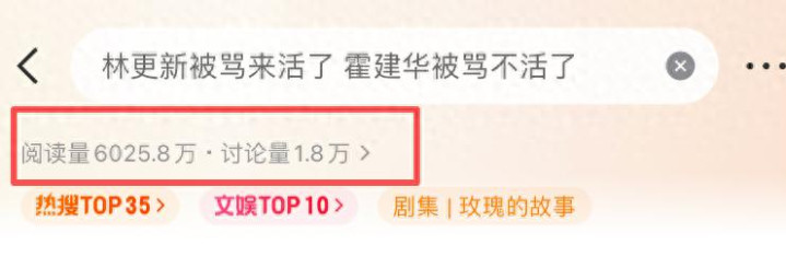这不,近日林更新被骂来活了,霍建华被骂不活了,瞬间冲上热搜,评论区炸锅,阅读量直奔6千万。